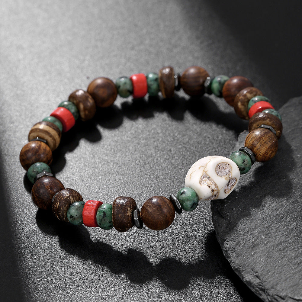 Skull Turquoise Wood Bead Coconut Bracelet